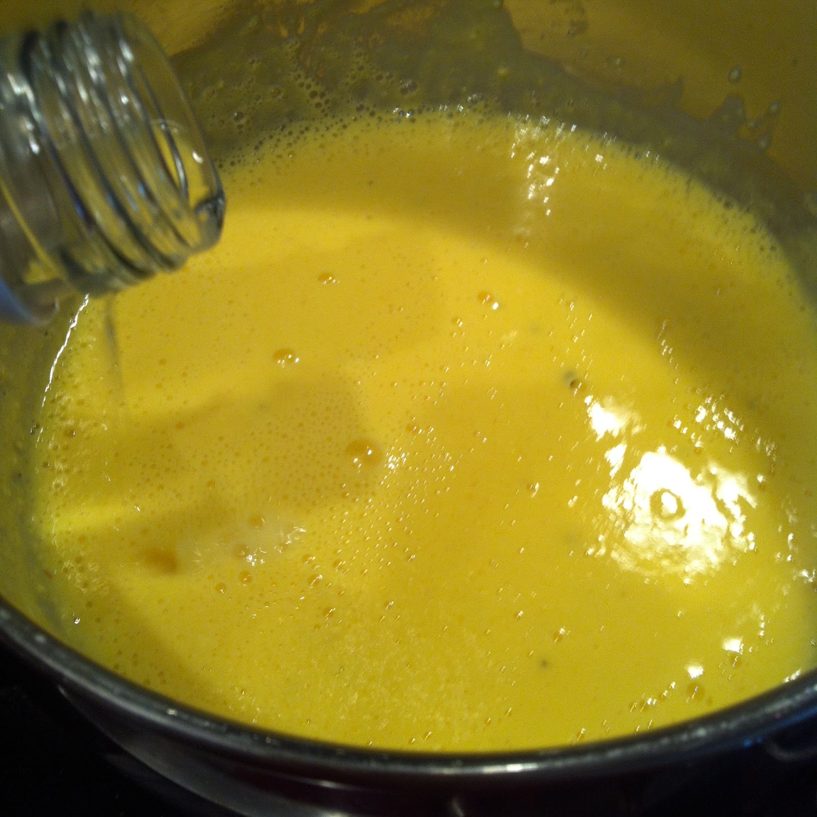 Sbattete i tuorli d'uovo e zucchero assieme in una pentola